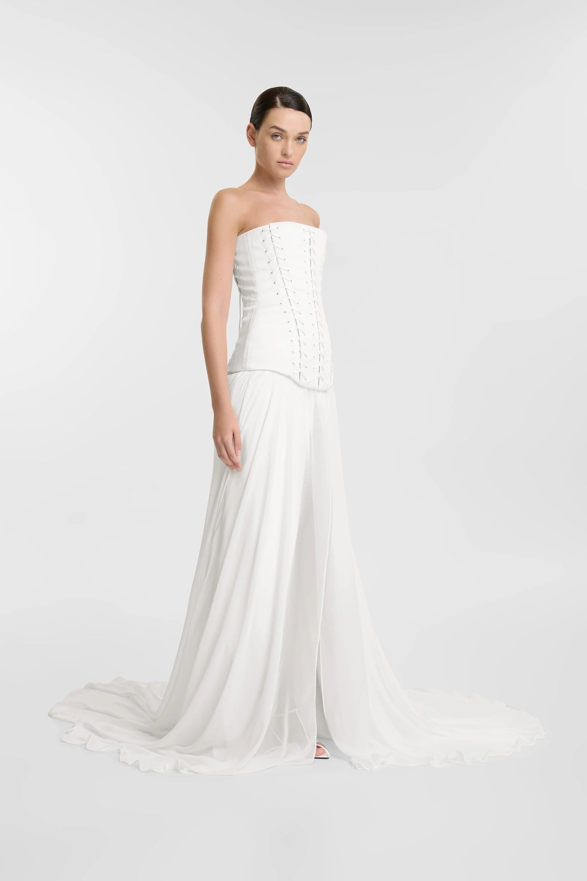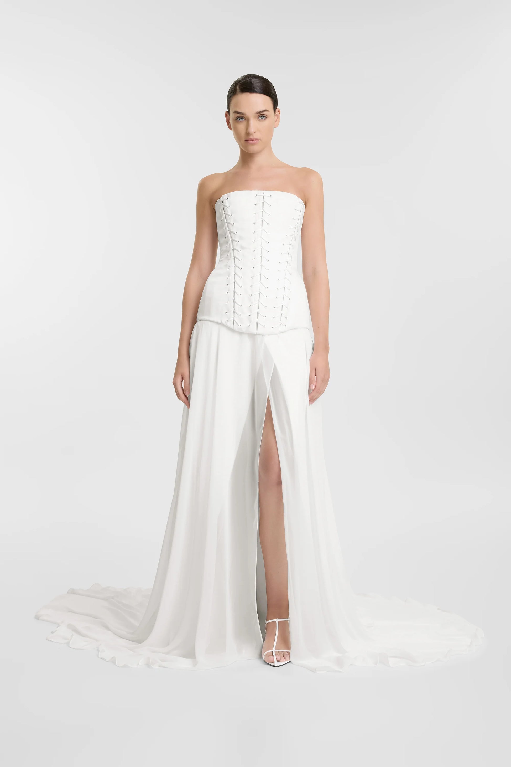 Perfect for the contemporary bride who wants to create multiple bridal looks, the Bassett Skirt pairs beautifully with corsets, bodices, or minimalist tops to give you the freedom to style your day your way. Its versatile design makes it a dream choice for ceremonies, receptions, or a dramatic second-look moment.