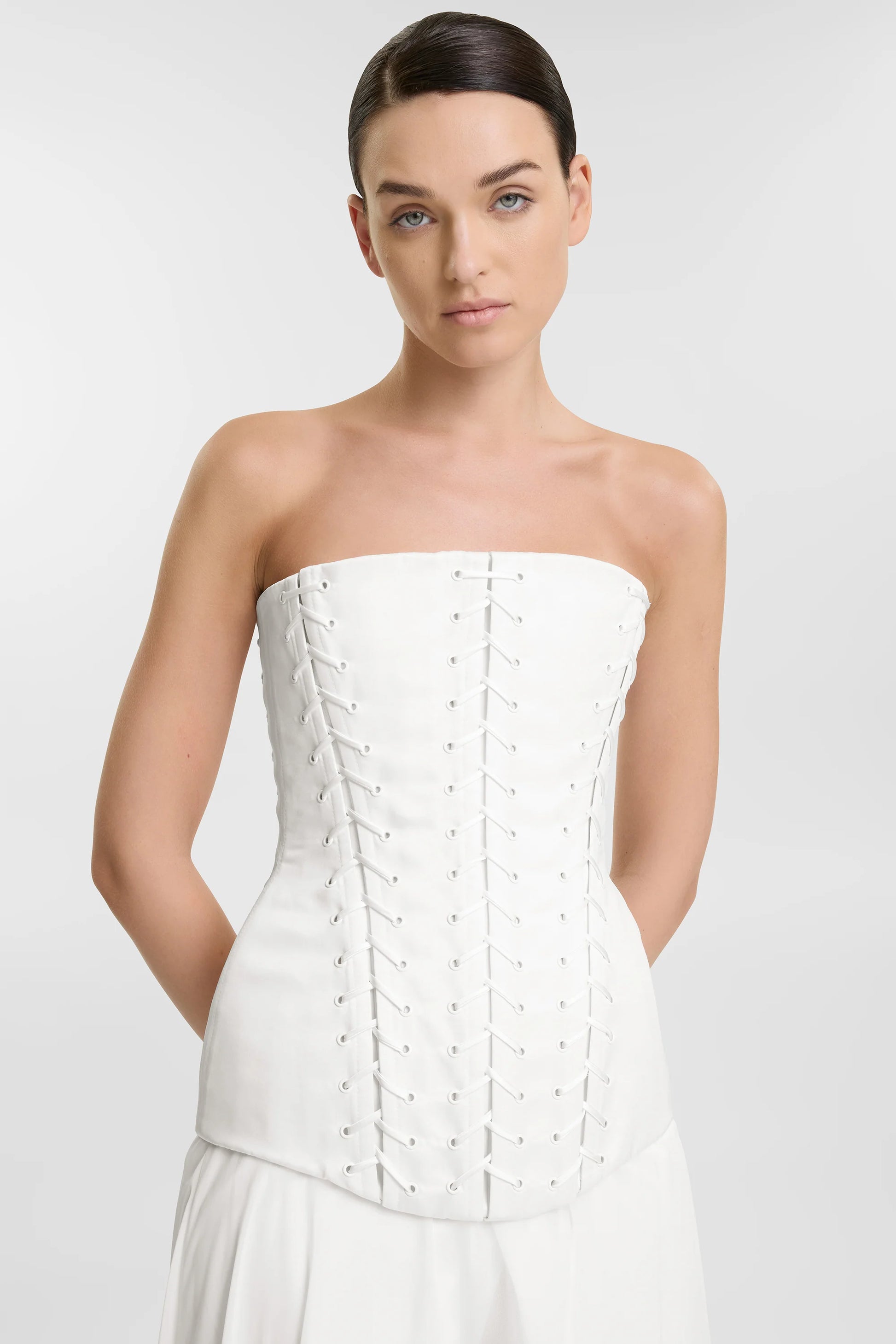 A modern bridal icon, the Bassett Skirt by KYHA is the epitome of effortless chic. Designed in luxurious lightweight satin, this high-impact skirt is crafted with dramatic volume and a structured waistband that cinches the waist while allowing the fabric to fall in fluid, architectural folds. The result is a statement silhouette that feels both powerful and romantic.