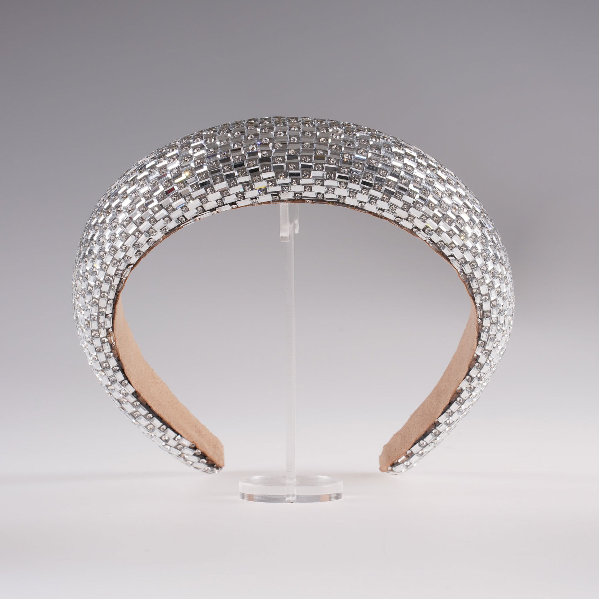 A glistening headband that sparkles from every angle! The Silver Waffle Headband features all-over rectangular mirror embellishments and is finished with sparkling details - it's the perfect piece for a Bride who's looking to turn up the glam for the wedding evening.